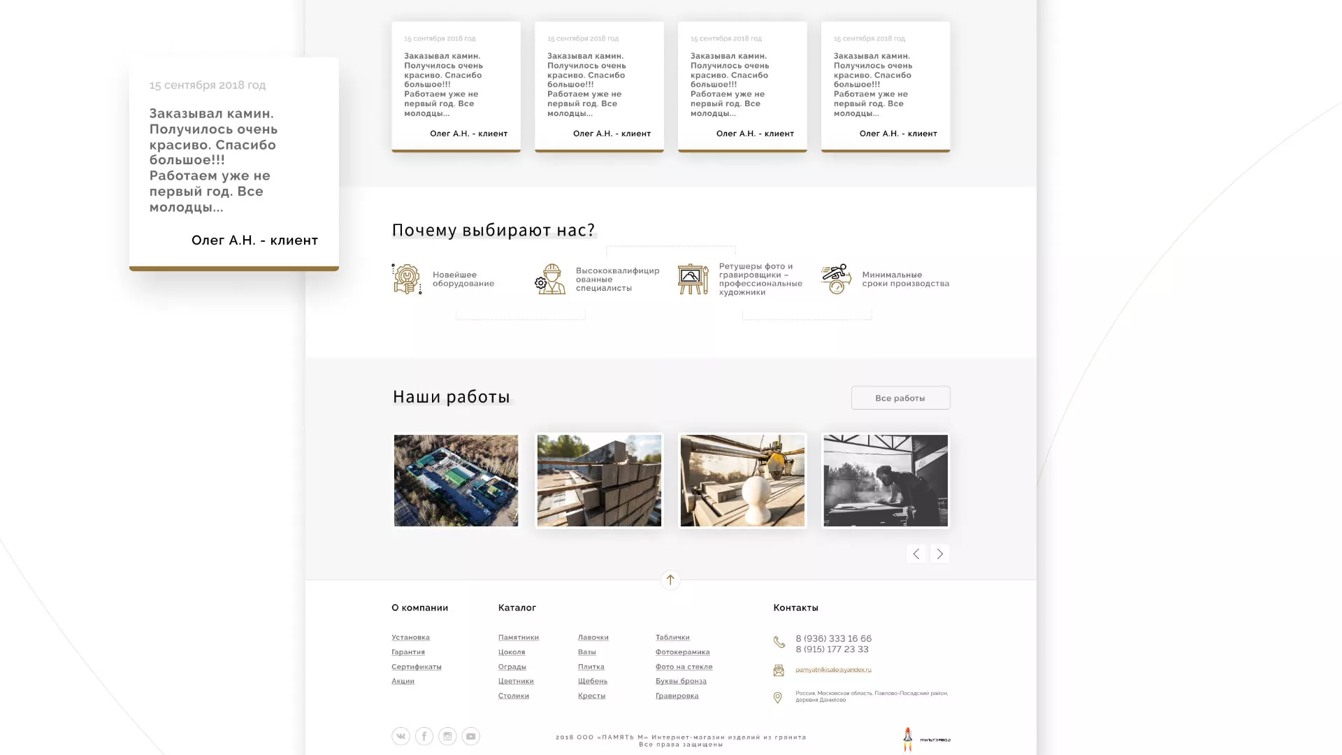 Разработка логотипа, фирменного стиля и сайта в Менделеевске для компании «Память-М». Компания является предприятием по изготовлению всех видов надгробных сооружений: памятников, цоколей на могилу, оградок, столов, лавочек, ваз, балясин, плитки, мемориальных комплексов. Компании «Память-М» изготавливает все виды мемориальных изделий на собственном производстве в Менделеевске.