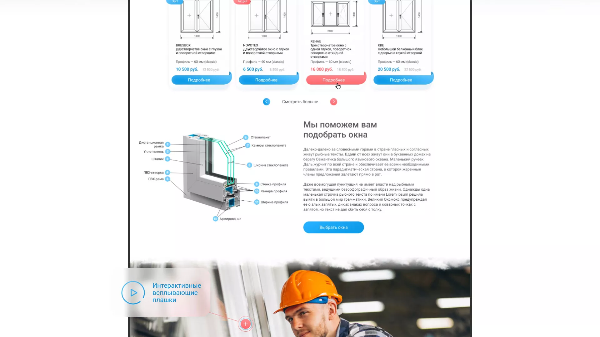 Задачей по проекту было — разработать светлый, дружелюбный дизайн сайта-каталога компании «Окна ВИДО» в Менделеевске, интерфейс взаимодействия с пользователем и проработать внутренние страницы, наглядно отобразив информацию иллюстрациями.