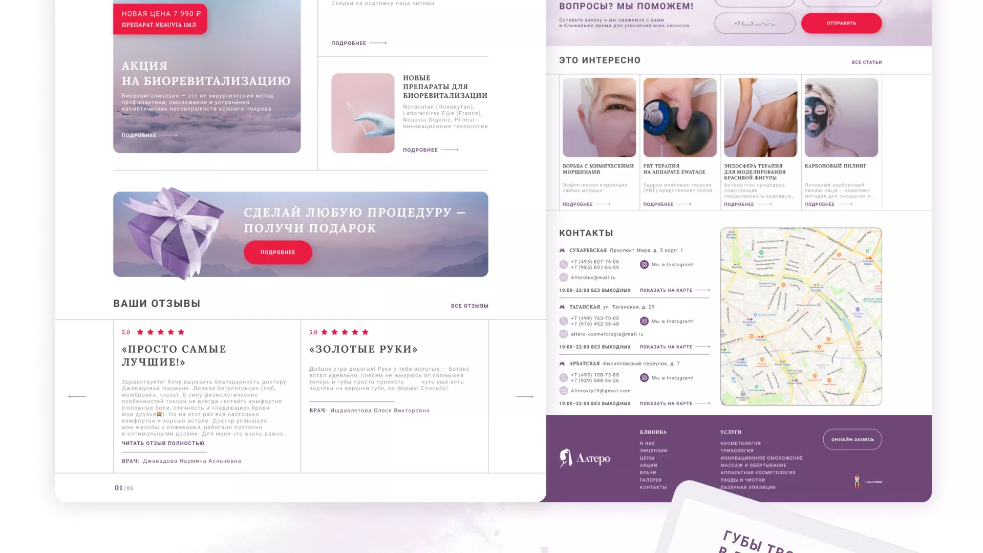 Сеть клиник эстетической косметологии «Алтеро» в Менделеевске — это квалифицированные специалисты, новейшее оборудование, качественные препараты, эффективные и разнообразные методы лечения, индивидуальный подход с учетом физиологических особенностей и пожеланий пациента, доступные цены.